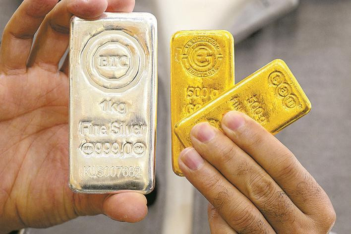 这是2026年1月12日在科威特首都科威特城拍摄的金条和银条(资料照片)。新华社/法新